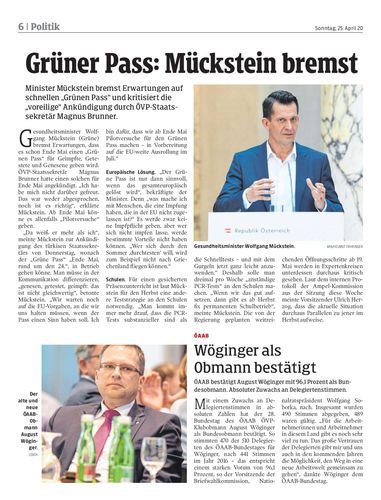 Minister Mückstein bremst Erwartungen auf schnellen „Grünen Pass“ und kritisiert die „voreilige“ Ankündigung durch ÖVP-Staatssekretär Magnus Brunner.