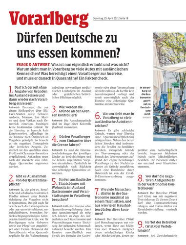 Frage & Antwort. Was ist nun eigentlich erlaubt und was nicht? Warum sieht man in Vorarlberg so viele Autos mit ausländischen Kennzeichen? Was berechtigt einen Vorarlberger zur Ausreise, und muss er danach in Quarantäne? Ein Faktencheck.