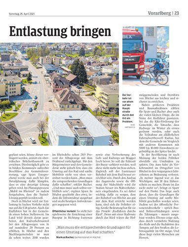 Das hohe Verkehrsaufkommen ist auch für viele Bürger in Höchst eine Belastung. Doch nicht nur das Schnellstraßenprojekt soll Linderung verschaffen. Auch das Radfahren und die Benutzung der Öffis wird forciert.