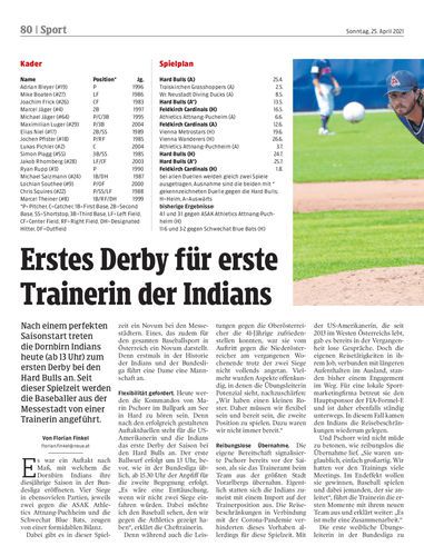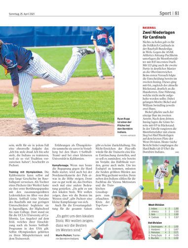 Nach einem perfekten Saisonstart treten die Dornbirn Indians heute (ab 13 Uhr) zum ersten Derby bei den Hard Bulls an. Seit dieser Spielzeit werden die Baseballer aus der Messestadt von einer Trainerin angeführt.