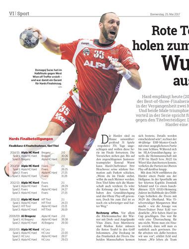 Hard empfängt heute (20.20 Uhr) zum Auftakt der Best-of-three-Finalserie die Fivers, auf die sie in der Vergangenheit zwei Mal im Endspiel trafen. Und beide Male triumphierten. Auch der Heimvorteil in der Serie spricht für die Roten Teufel und gegen den Titelverteidiger. Denn zu Hause sind die Harder eine Macht.