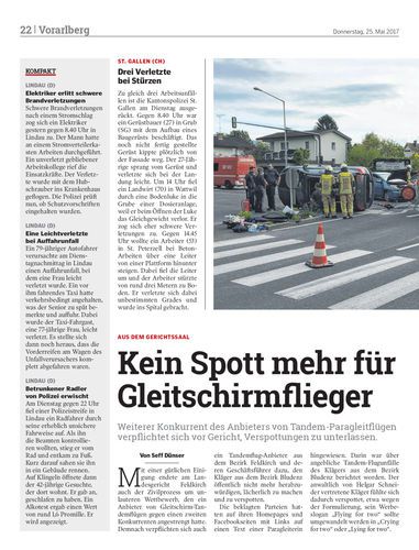 Weiterer Konkurrent des Anbieters von Tandem-Paragleitflügen verpflichtet sich vor Gericht, Verspottungen zu unterlassen.