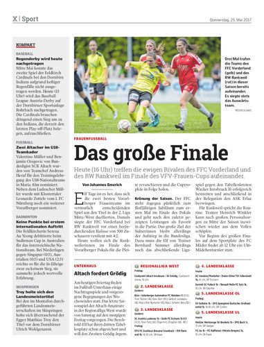 Heute (16 Uhr) treffen die ewigen Rivalen des FFC Vorderland und des RW Rankweil im Finale des VFV-Frauen-Cups aufeinander.