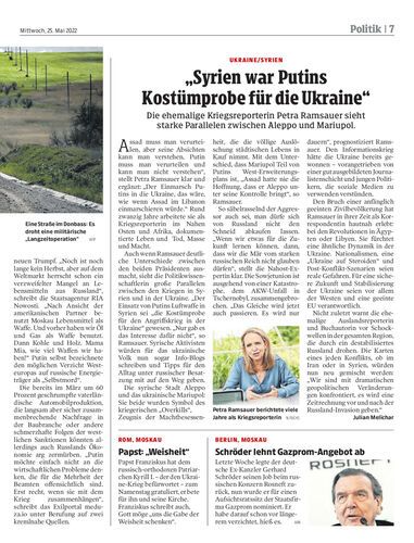 Die ehemalige Kriegsreporterin Petra Ramsauer sieht starke Parallelen zwischen Aleppo und Mariupol.