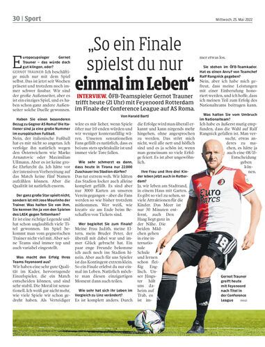 ÖFB-Teamspieler Gernot Trauner trifft heute (21 Uhr) mit Feyenoord Rotterdam im Finale der Conference League auf AS Roma. Von Harald Bartl