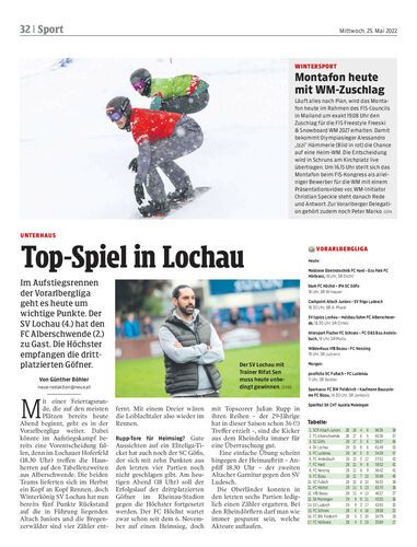 Im Aufstiegsrennen der Vorarlbergliga geht es heute um wichtige Punkte. Der SV Lochau (4.) hat den FC Alberschwende (2.) zu Gast. Die Höchster empfangen die drittplatzierten Göfner.