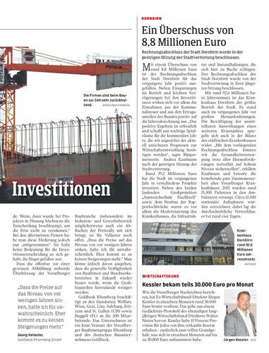 Rechnungsabschluss der Stadt Dornbirn wurde in der gestrigen Sitzung der Stadtvertretung beschlossen.