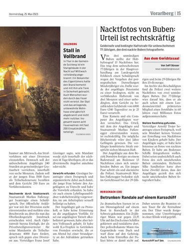 Geldstrafe und bedingte Haftstrafe für unbescholtenen 77-Jährigen, der drei nackte Buben fotografierte.