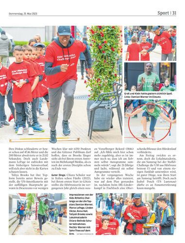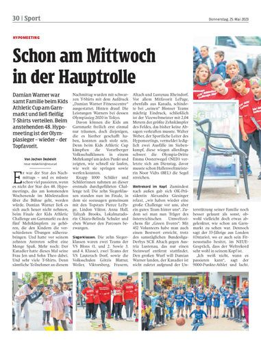Damian Warner war samt Familie beim Kids Athletic Cup am Garnmarkt und ließ fleißig T-Shirts verteilen. Beim anstehenden 48. Hypomeeting ist der Olympiasieger – wieder – der Topfavorit.