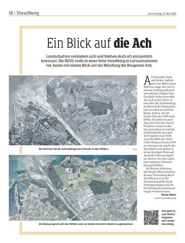Landschaften verändern sich und bleiben doch oft erstaunlich konstant. Die NEUE stellt in einer Serie Vorarlberg in Luftaufnahmen vor, heute mit einem Blick auf die Mündung der Bregenzer Ach.
