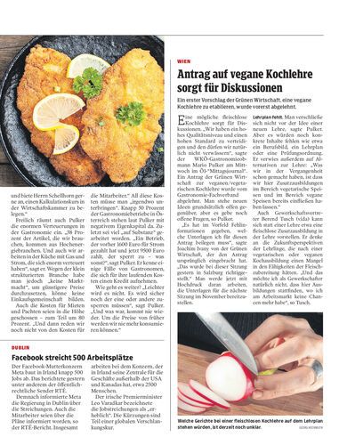 Ein erster Vorschlag der Grünen Wirtschaft, eine vegane Kochlehre zu etablieren, wurde vorerst abgelehnt.