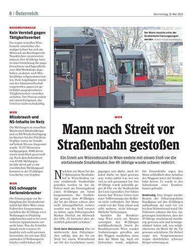 Ein Streit am Würstelstand in Wien endete mit einem Stoß vor die einfahrende Straßenbahn. Der 49-Jährige wurde schwer verletzt.