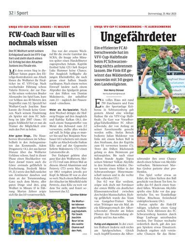 Der FC Wolfurt setzt seinen Erfolgslauf auch im VFV-Cup fort und zieht durch einen 3:2-Erfolg bei den Altacher Juniors ins Finale ein.