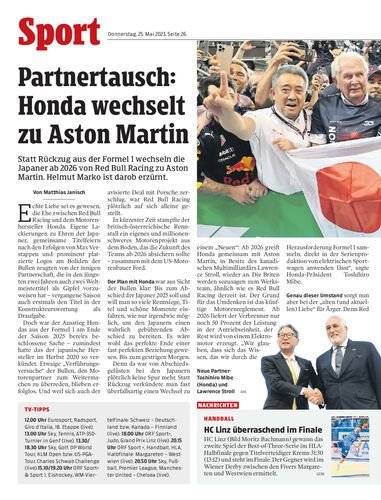 Statt Rückzug aus der Formel 1 wechseln die Japaner ab 2026 von Red Bull Racing zu Aston Martin. Helmut Marko ist darob erzürnt.
