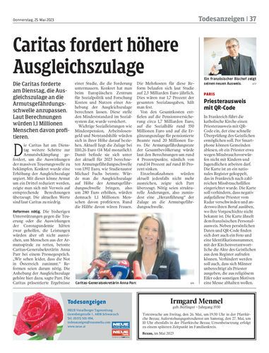 Die Caritas forderte am Dienstag, die Ausgleichszulage an die Armutsgefährdungsschwelle anzupassen. Laut Berechnungen würden 1,1 Millionen Menschen davon profitieren.