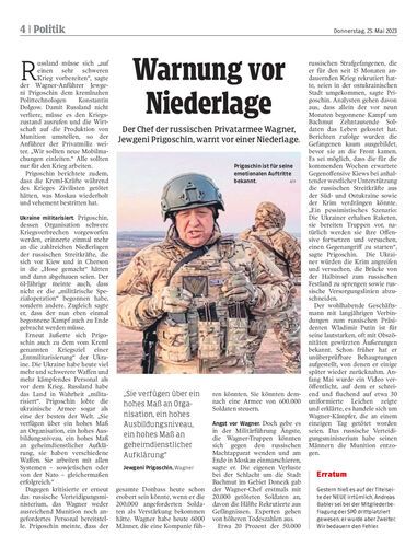 Der Chef der russischen Privatarmee Wagner, Jewgeni Prigoschin, warnt vor einer Niederlage.