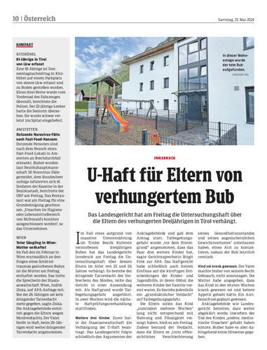 Das Landesgericht hat am Freitag die Untersuchungshaft über die Eltern des verhungerten Dreijährigen in Tirol verhängt.