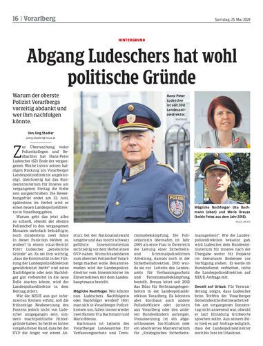 Warum der oberste Polizist Vorarlbergs vorzeitig abdankt und wer ihm nachfolgen könnte.