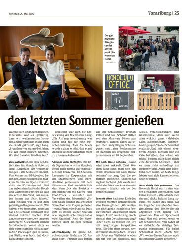 Seit drei Jahren sorgt das Honolulu Hotel in Bregenz für kreative Impulse und im Gastgarten für sommerliche Leichtigkeit. Ende September ist für das Zwischennutzungsprojekt Schluss. Die letzten Monate haben noch viele Highlights.