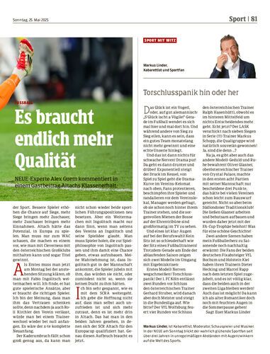 Essay. Der SCR Altach hat am Freitag in Linz den Klassenerhalt gefeiert: Dank der Schützenhilfe des TSV Hartberg und dank der Punkteteilung, ohne die man einen Zähler weniger als Klagenfurt auf dem Konto gehabt hätte. Ab morgen beginnt beim SCRA die Aufarbeitung. Gedanken zum Altacher Kreislauf.