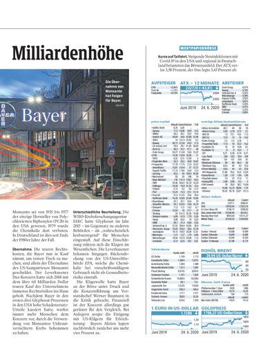Der Chemiekonzern Bayer hat sich zu einer Zahlung im Rechtsstreit um den Wirkstoff Glyphosat und anderen Chemikalien bereit erklärt.