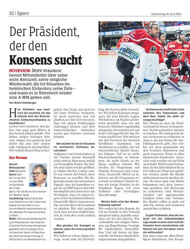 interview. ÖEHV-Präsident Gernot Mittendorfer über seine erste Amtszeit, seine mögliche Wiederwahl, die Ist-Situation im heimischen Eishockey, seine Ziele – und wann es in Österreich wieder eine A-WM geben soll. Von Mario Kleinberger