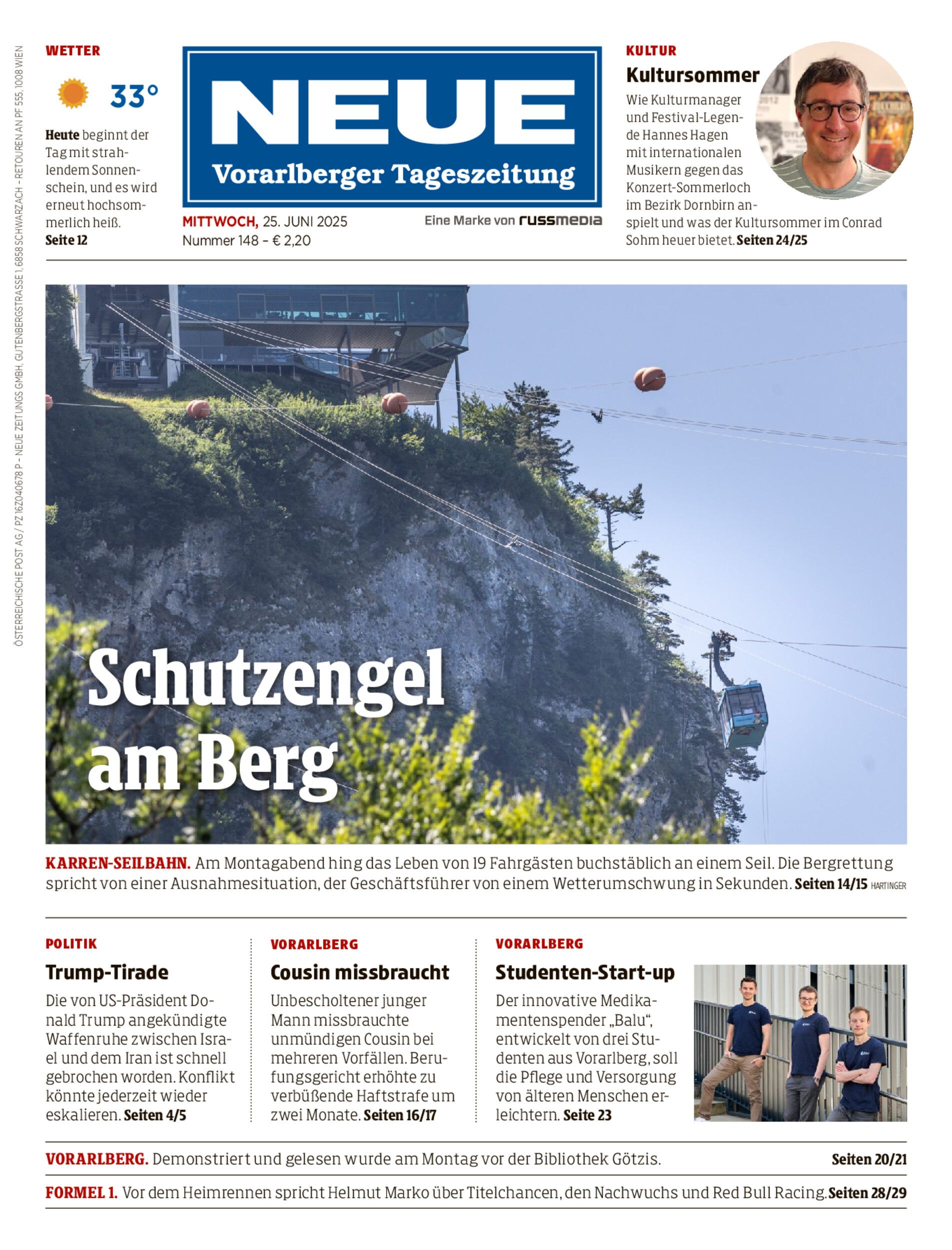 Bergretter Klaus Drexel sprach mit der NEUE über die dramatischen Stunden der Rettungsaktion am Karren, bei der 19 Personen in 150 Metern Höhe in der Seilbahn festsaßen.