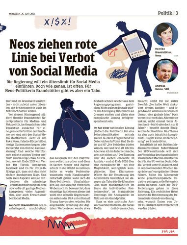 Neos ziehen rote Linie bei Verbot von Social Media