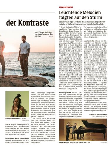 Schubertiade: Igor Levit und Renaud Capuçon begeisterten mit einem Brahms-Programm von klanglicher Einigkeit.