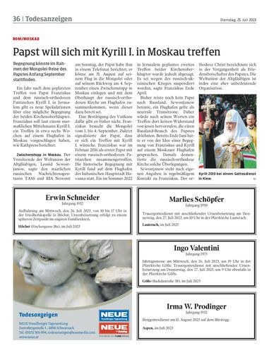 Begegnung könnte im Rahmen der Mongolei-Reise des Papstes Anfang September stattfinden.