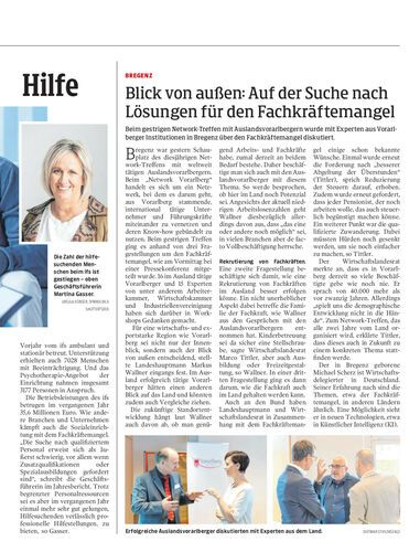 Beim gestrigen Network-Treffen mit Auslandsvorarlbergern wurde mit Experten aus Vorarlberger Institutionen in Bregenz über den Fachkräftemangel diskutiert.