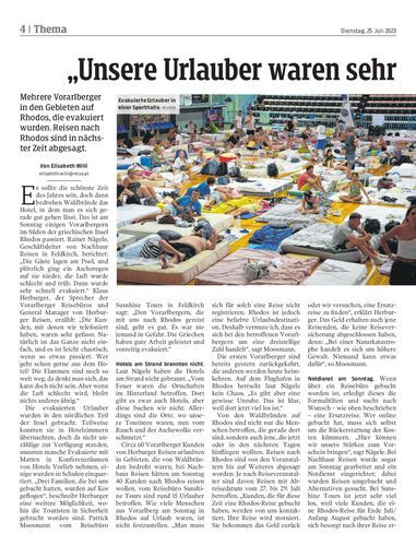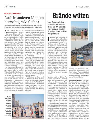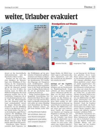 Mehrere Vorarlberger in den Gebieten auf Rhodos, die evakuiert wurden. Reisen nach Rhodos sind in nächster Zeit abgesagt.