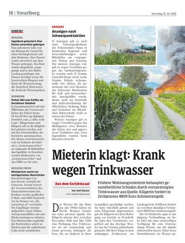 Frühere Wohnungsmieterin behauptet gesundheitliche Schäden durch verunreinigtes Trinkwasser aus Quelle. Klägerin fordert in Zivilprozess 8800 Euro Schmerzengeld.