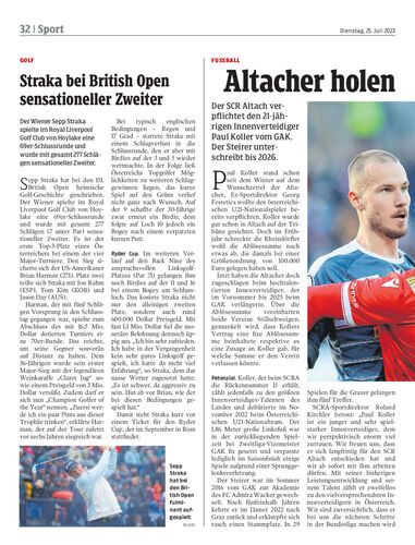 Der SCR Altach verpflichtet den 21-jährigen Innenverteidiger Paul Koller vom GAK. Der Steirer unterschreibt bis 2026.