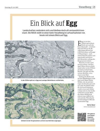 Landschaften verändern sich und bleiben doch oft erstaunlich konstant. Die NEUE stellt in einer Serie Vorarlberg in Luftaufnahmen vor, heute mit einem Blick auf Egg.