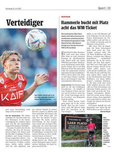 Der Lauteracher Max Hammerle wird beim Ironman im zweifachen amerikanischen Olympiaaustragungsort Lake Placid Achter. Mit diesem Erfolg ist er bei der Ironman-WM in Nizza dabei.