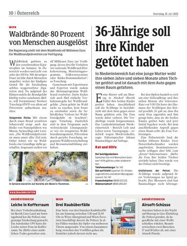 In Niederösterreich hat eine junge Mutter wohl ihre sieben Jahre und sieben Monate alten Töchter getötet und ist danach mit dem Auto gegen einen Baum gefahren.