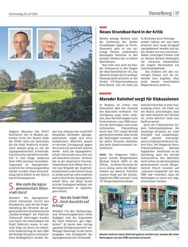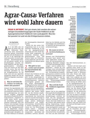 Frage & Antwort. Seit gut einem Jahr werden die seinerzeitigen Grundübertragungen der Stadt Feldkirch an die Agrargemeinschaft Feldkirch vom Land geprüft. Was bisher passiert ist und wie die Erfolgschancen stehen.