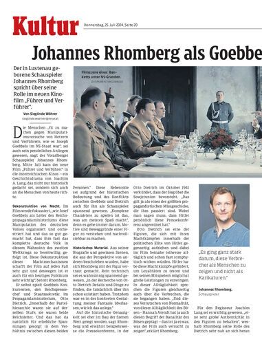Der in Lustenau geborene Schauspieler Johannes Rhomberg spricht über seine Rolle im neuen Kinofilm „Führer und Verführer“.