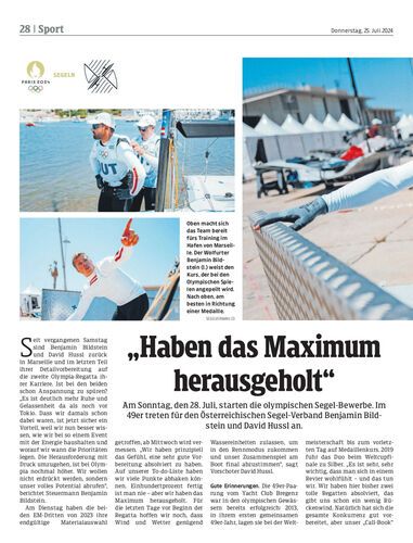 Am Sonntag, den 28. Juli, starten die olympischen Segel-Bewerbe. Im 49er treten für den Österreichischen Segel-Verband Benjamin Bildstein und David Hussl an.