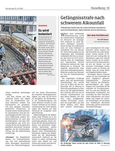 Teilbedingte Haftstrafe für unbescholtenen Autofahrer nach Frontalkollision. Opfer befindet sich im Wachkoma.