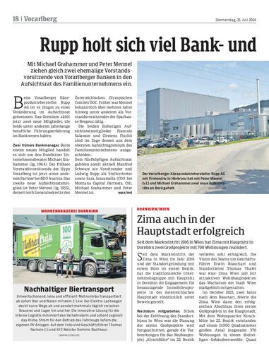 Mit Michael Grahammer und Peter Mennel ziehen gleich zwei ehemalige Vorstandsvorsitzende von Vorarlberger Banken in den Aufsichtsrat des Familienunternehmens ein.