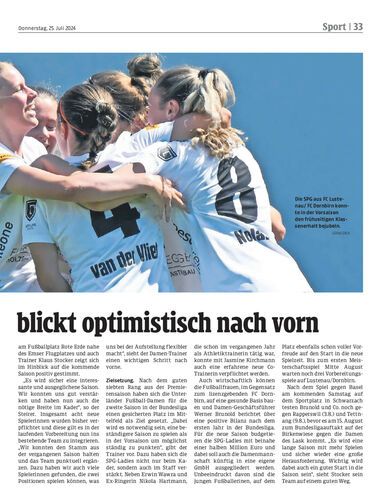 Die Kickerinnen der Spielgemeinschaft FC Lustenau/FC Dornbirn befinden sich mitten in den Vorbereitungen zur zweiten Saison in der Bundesliga. Erster Ligagegner ist der Lask am 15. August.