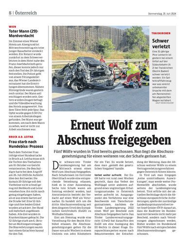 Fünf Wölfe wurden in Tirol bereits geschossen. Nun liegt die Abschussgenehmigung für einen weiteren vor, der Schafe gerissen hat.