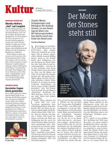 Charlie Watts, Schlagzeuger und Rückgrat der Rolling Stones, ist am Dienstag im Alter von 80 Jahren gestorben. Das dürfte auch das Ende der Band sein. Von Bernd Melichar
