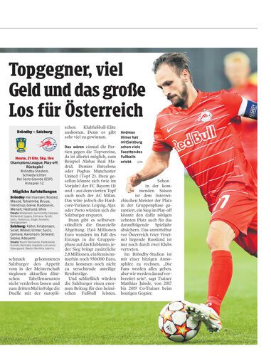 Salzburg kann mit einem Erfolg im Play-off der Champions League gegen Bröndby viel gewinnen. Routinier Ulmer bestreitet sein 500. Spiel für den Klub.