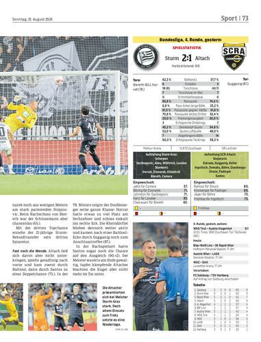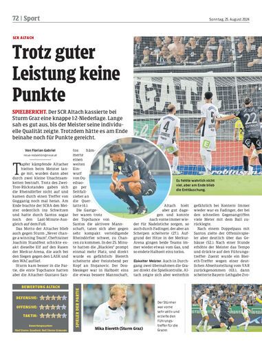Spielbericht. Der SCR Altach kassierte bei Sturm Graz eine knappe 1:2-Niederlage. Lange sah es gut aus, bis der Meister seine individuelle Qualität zeigte. Trotzdem hätte es am Ende beinahe noch für Punkte gereicht.