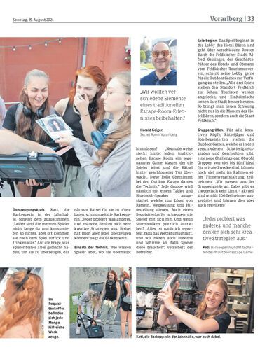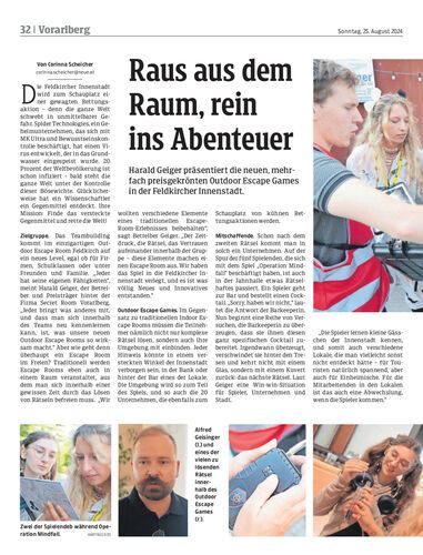 Harald Geiger präsentiert die neuen, mehrfach preisgekrönten Outdoor Escape Games in der Feldkircher Innenstadt.