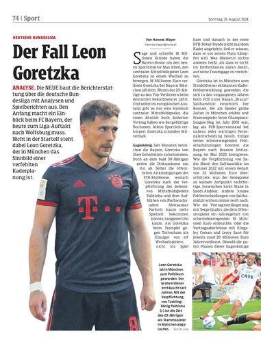 Analyse. Die NEUE baut die Berichterstattung über die deutsche Bundesliga mit Analysen und Spielberichten aus. Den Anfang macht ein Einblick beim FC Bayern, der heute zum Liga-Auftakt nach Wolfsburg muss. Nicht in der Startelf steht dabei Leon Goretzka, der in München das Sinnbild einer verfehlten Kaderplanung ist.