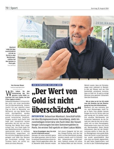 Interview. Sebastian Manhart, Geschäftsführer des Olympiazentrums Vorarlberg, zieht im zweiteiligen Interview ein Fazit über die Vorarlberger Leistungen bei den Sommerspielen in Paris. Im ersten Teil spricht er über Lukas Mähr.